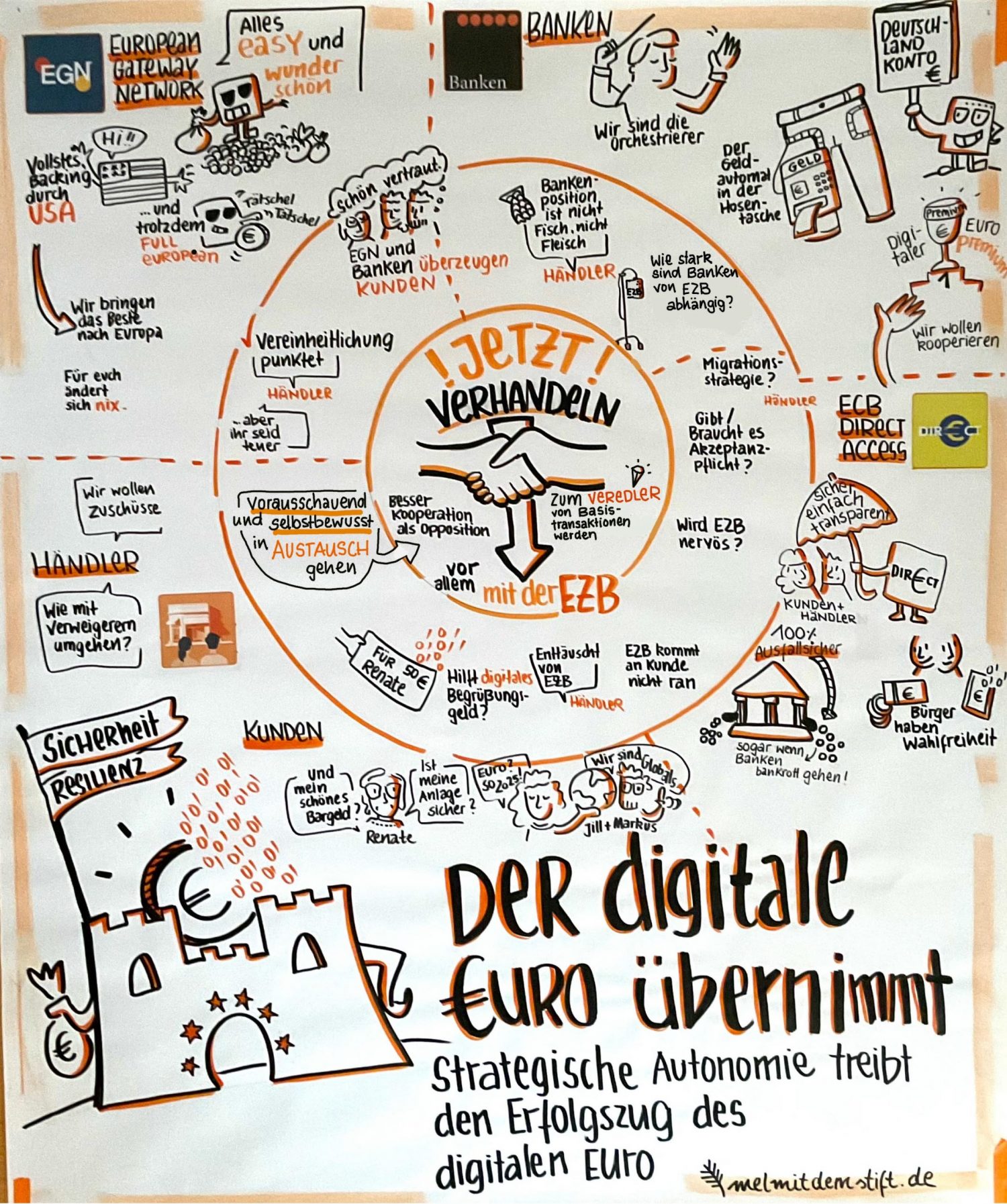 Mögliches Zielbild einer europäischen Arbeitsgruppe, die den Erfolg des digitalen Euro sichern will: